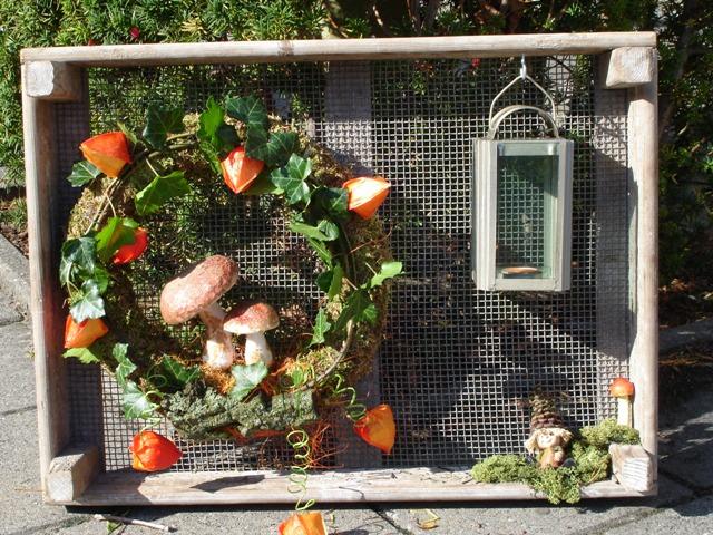 Je kan je inschrijven voor een herfstkrans in een gaaskistje, opgemaakt met groen naar keuze, een dennepopje en lantaarntje. Kosten € 32,50 dit is incl. koffie/thee met wat lekkers.